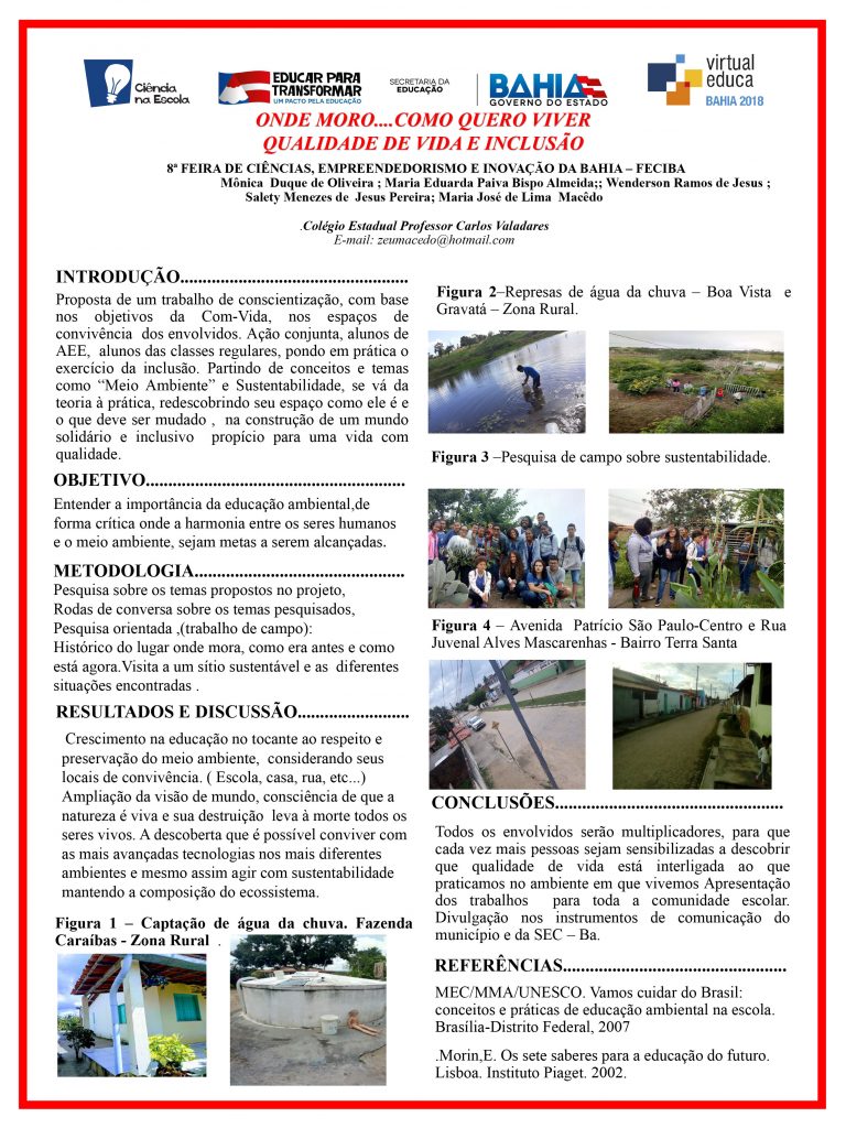 Colégio Estadual Professor Carlos Valadares, de Santa Bárbara participa do evento Educação Científica e Sustentabilidade com o Projeto: Entre a Territorialidade e a Pesquisa: Um Relato de Experiência da Geografia e da Iniciação Científica na Educação Básica, recebeu o Prêmio de Melhor Relato de Experiência.