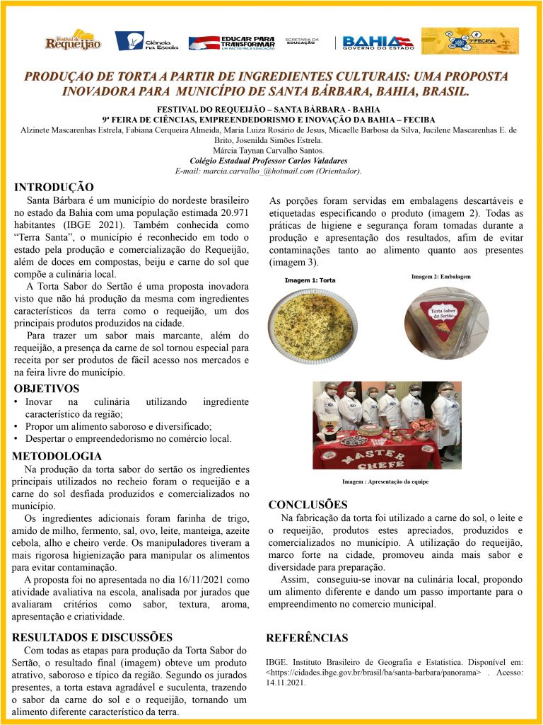 Produção de Torta a Partir de Ingredientes Culturais 12/10/202312/10/2023 CEPCV Projeto 08 Produção de Torta a Partir de Ingredientes Culturais uma Proposta Inovadora para Município de Santa Bárbara
